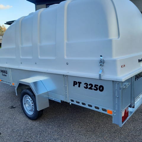 Hyväkuntoinen kuomukärry. Kippaava. Lavan sisämitat 295x132cm. Laidan korkeus 25cm.