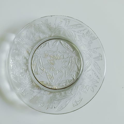 Oletettavasti vanha, pieni lasilautanen. Halkaisija n. 14,8 cm ja korkeus n. 2 cm.