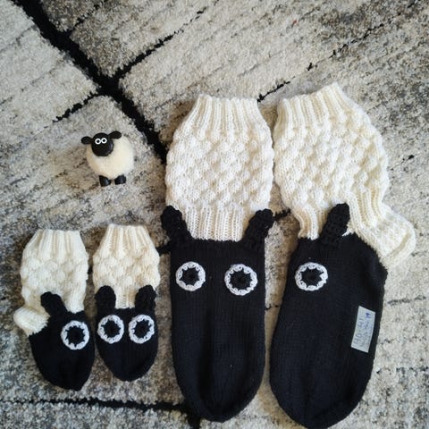 Käsintehty vauvan Late lammas sukat Nalle villalangasta.