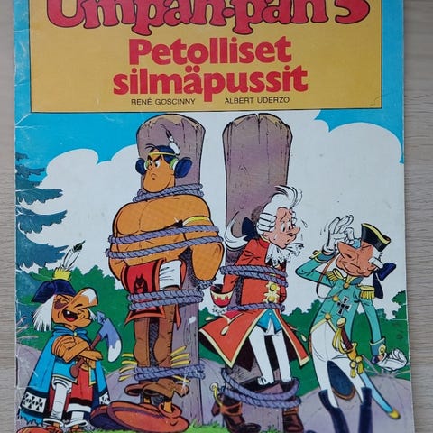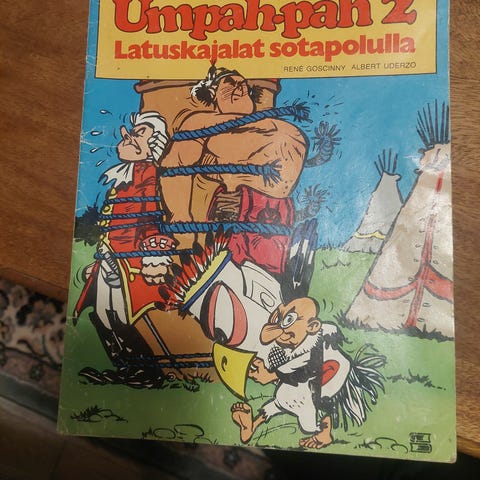 Umpah-pah sarjakuva-albumi 4 Salainen tehtävä vuodelta 1977, 1. painos. Tekijät Goscinny-Uderzo, tutut Asterixista. Kunto hyvä, vaikka kansissa kulumaa ja takakannessa pieni läikkä, tarkistathan kunnon kuvista. Hinta vain 6 euroa. Kiva tapa saada lapsi lukemaan! Kiva lahjaidea! TORIDIILI: voit ottaa yhdellä ostolla, yhdessä paketissa ja yksillä torikuluilla myös useamman sarjakuvan, KYSY ENNEN OSTOA. Katso muut sarjakuvat hakusanoilla ollin sarjakuvat.
