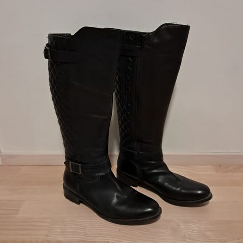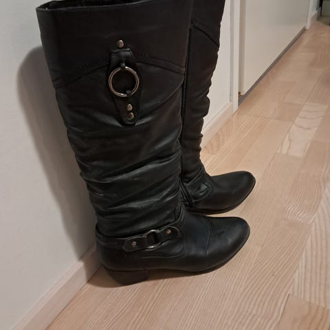Uudet, käyttämättömät saappaat. Koko 39. Pohjan sisämitta n. 24,5-25 cm. Nauhoilla ja soljilla pystyy säätämään varren ympärystä.