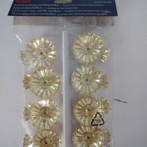 10 kpl kynttilänpidikkeitä joulukuuseen tai vaikka lautasen reunaan joulukattaukseen. Mukaan tulee 6kpl Havin kuusenkynttilöitä