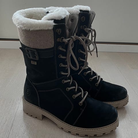 Myydään Rieker-talvikengät, koko 39 (itse käytän normaalisti myös kokoa 40), väri musta , nahkaa. Nilkkapituiset talvikengät, joissa on vetoketju sivussa ja n. 5 cm korkea kanta.