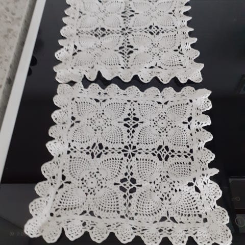 Myydään 6 kpl vihreitä ja 3 kpl oransseja virkattuja liinoja. Yhteishinta 20€.