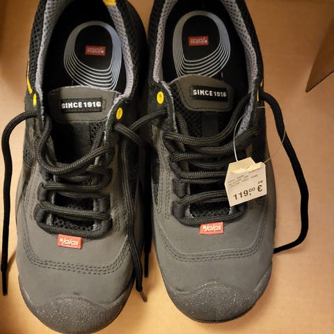 Vain pariin kertaan käytetyt Jalaksen työjalkineet. Kunnossa ei moitteita. Nopea yhden tarran kiinnitys. Lisätietoja Jalaksen sivuilta.