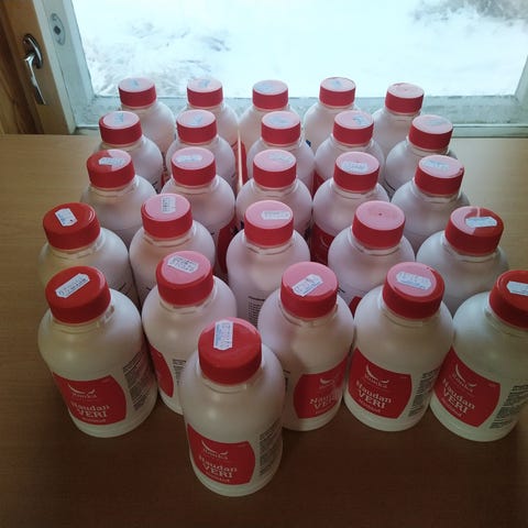 Myydään mehun säilöntään käytettyjä 1 litran muovipulloja. Pullot on pesty ja hyvässä kunnossa.