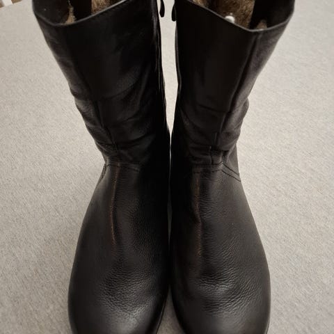 Käyttämättömät Capricen mustat Marika-saapikkaat. Sivuissa sisäpuolella vetoketjut sekä ulkopuolella tupsulliset vetoketjut. Ohut karvainen vuori. Korko takaa mitattuna 6 cm, koron etuosasta 4 cm.