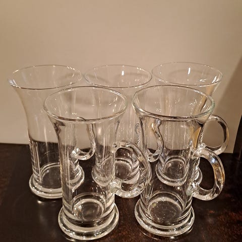 Kaunis vihreänsävyinen lasi, jossa lukee "irish coffee"