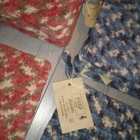 Uudet patalaput rallilippukankaasta, pehmeät ja notkeat. Hinta 3e/kpl.