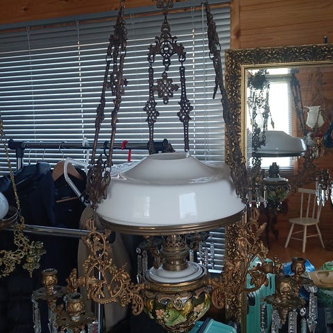 Hyväkuntoinen, juuri katosta irrotettu vanha desing lamppu. Tämä yksilö on täysin ehjä ja moitteeton, vähän pölyssä. Tuossa löytyi vastaava jostain antiikkiliikkeet sivuilta, jossa oli tosin vähän säröä toisin kuin omassani