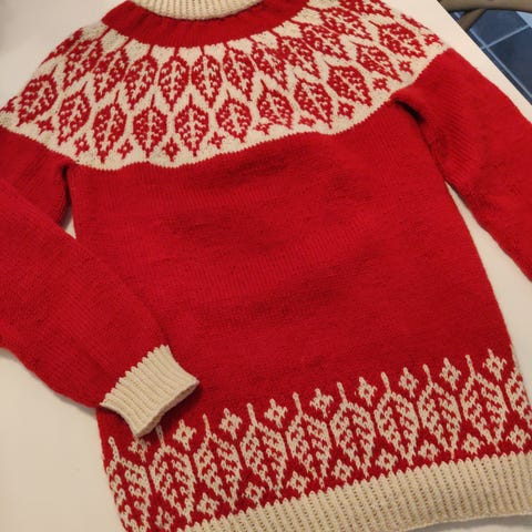 Uusi käsinkudottu kaarrokeneule.Koko L ( naisten )