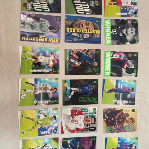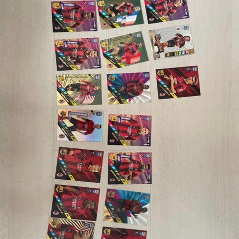 sekalaisia jalkapallo kortteja