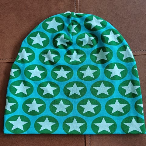 Käsityönä ommeltu uusi trikoopipo pojalle. Pipo on ommeltu kaksinkertaiseksi, kangas pesty hajusteettomalla pesuaineella ennen ompelua.