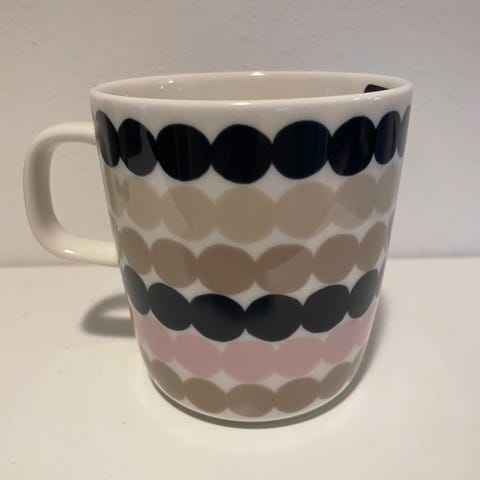 Marimekon uusi räsymatto iso 4dl muki. Tarra kiinni, joten sopii hyvin myös vaikka lahjaksi. Ovh 28€, hp 15€. Nouto Kuninkaantammesta.