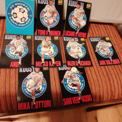 Mikkelin Palloilijat jalkapallokortit, Sunset 1995, keräilykortit, Jussi Jääskeläinen, urheilukortteja, yhteishintaan posteineen tasaraha 4 €.