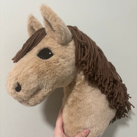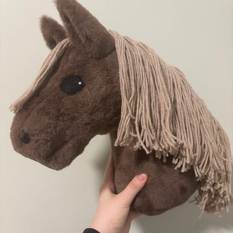 Käsin ommeltu laadukas keppihevonen.