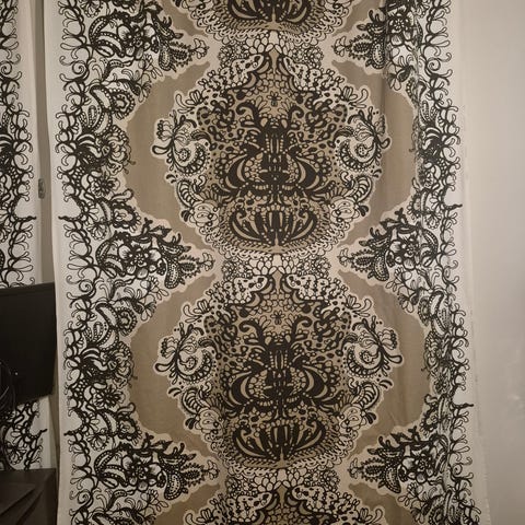 Erittäin siistit Vallilan läpikuultavat mustakuvioiset verhot. Näitä on kolme ja hinta on yhteishinta kaikille. Ei haalistumaa. Kerran pesty hajusteettomalla pesuaineella. Uutena ostettu meille. Näitä on lyhennetty silitettävällä nauhalla, jonka avaamalla saa 8cm lisää pituutta