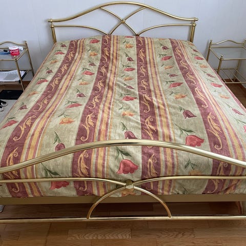Ehjä ja siisti vaalean beihen värinen päiväpeitto. Tässä 140cm sängyssä mutta ollut käytössä myös 160cm leveässä sängyssä.