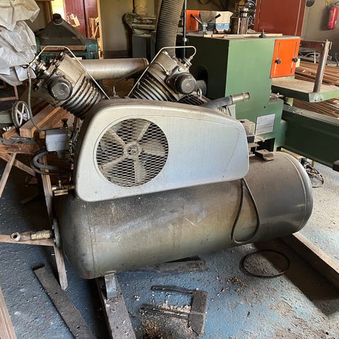 Olleet kalustetehtaalla käytössä,, sieltä kauan sitten katkaistu toimivina irti. Atlas copco on Suomeen tullut 1906 ruotsista. Voidaan maalata ja hiekkapuhaltaa asiakkaan toiveesta.