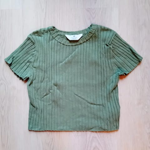Käyttämättömäksi jäänyt, raidallinen t-paita koossa 170 cm, joka vastaa kokoa XS