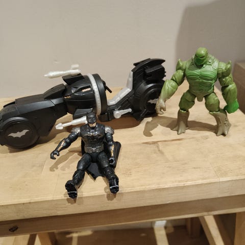 Myynnissä myös Batmanin auto ja Batman-hahmo.