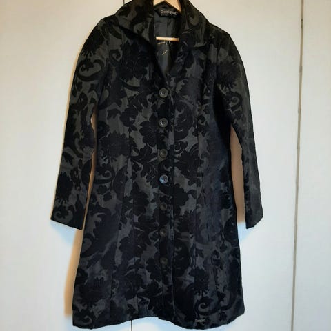 Myydään Desigualin hyväkuntoinen ja siisti takki (täysin puhdas – käytetty juuri pesulassa). Istuva ja ryhdikäs malli (nappirivi vasemmalla), mutta pienehkö kokoisekseen (kai-kai -mitta n. 48 cm). Edessä kaksi piilotaskua.