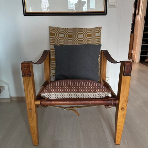 Harvinaiset Artekin safarituolit, malli 440, 60-luvulta. Ikäisekseen hyvässä kunnossa. Verhoiltu Gullichsen Doris kankaalla.