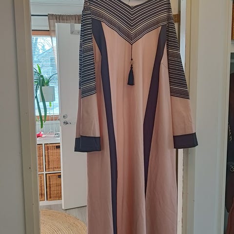 Mitat kai-kai venyttämättä 47cm, pituus olka-helma 111cm, hiha olkasaumasta 64cm.