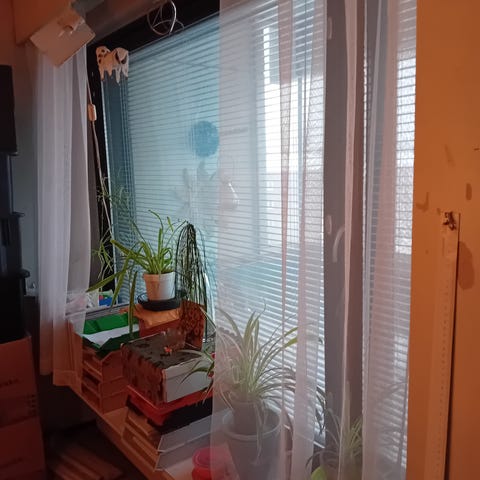 Reunapäädyt ompelematta, verho varsin käyttökelpoinen myös ilman saumoja, kangas ei rispaantuva.