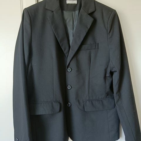 Musta pukujakku, koko 176, suunniteltu pojille. Jakku on valmistettu mustasta materiaalista ja siinä on kaksi nappia edessä sekä taskut. Sopii erilaisiin juhla- ja tilaisuuskäyttöihin.
