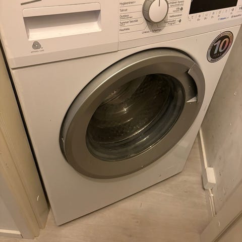 Kuvien mukainen pesukone. Pesty viime kesä muutamia kertoja hevosen ihottumaloimia pesupussissa. Sopii vielä vastaavaan toimeen.
