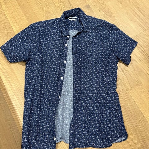 Jack & Jones sininen miesten kauluspaita, koko XL. Vastaa kokoa L. Pitkähihainen paita, jossa nappikiinnitys ja rintatasku. Materiaali 100% puuvilla. Regular fit. Kuvan malli 184cm.
