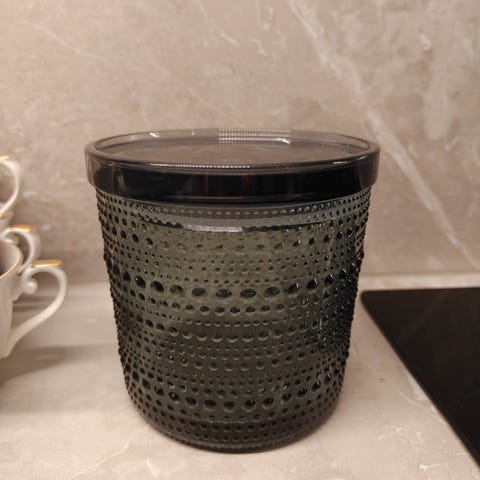Tummanharmaa kastehelmi purkki. Isompi koko.