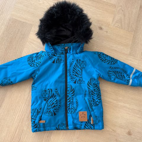 Mini Rodini lasten takki klassisella puna-mustalla leopardikuosilla, koko 92-98. Takissa on irrotettava huppu, jossa on irrotettava tekoturkisreunus. Sisävuori on musta. Takissa on etutaskut ja mustat resorit hihansuissa.