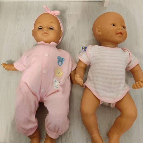 Selässä napit joista painamalla kasvojen ilme muuttuu nukeilla.