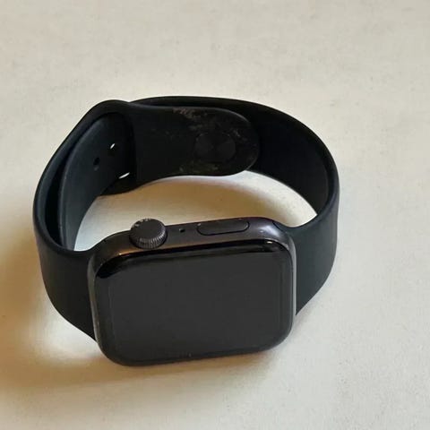 Space Gray Aluminum Case, Black Sport Band 45mm. Muuten moitteettomassa kunnossa, mutta ruudussa on ihan pieni hento viilto, jota ei edes kuvissa näe.