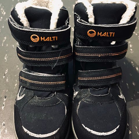 Halti Drymaxx softshell kengät kokoa 32. Hyvä kunto muuten mutta edessä on kulumaa. Tästä syystä hinta 4€.