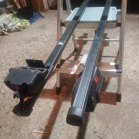 Kerran käytetyt kattotelineet Honda HR-V II mallin autoon vm. 2014-(2020), kiinnitys auton omiin umpinaisiin kattokaiteisiin. Toisen telineen pohjasta puuttuu suojalista, mutta siihen voi keksiä halutessa oman ratkaisun.