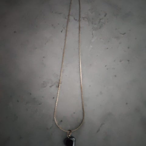 Iso sydän kaulakoru joka ilmeisesti tehty raudasta. Myytävänä myös muualla.