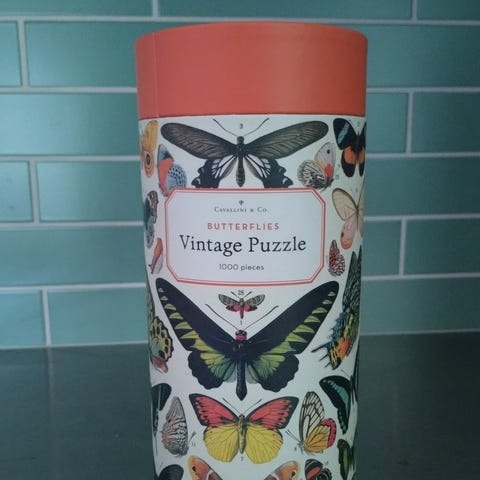 Palapeli, jossa on 1000 palaa. Kuvassa näkyy kirsikankukkia ja perinteinen linna. Palapelin koko on 67 x 48 cm.