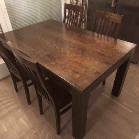Pilari jalat + 6 tuolia oiskoha saksan pähkinä puuta. Käytön jälkiä on.