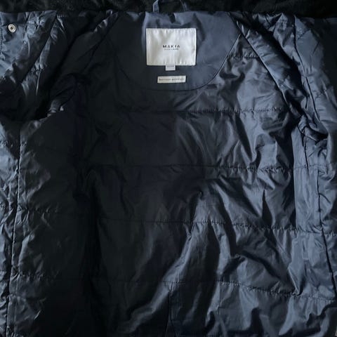 Tummansininen talvitakki, ollut yhden lapsen käytössä. Takissa on pieniä käytön jälkiä, ja naarmuja, jotka näkyvät kuvissa.