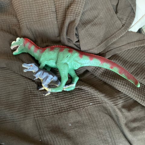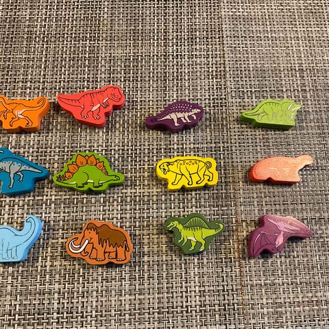 Dinosaurusaiheinen setti taikahiekkaa tarvikkeineen.
