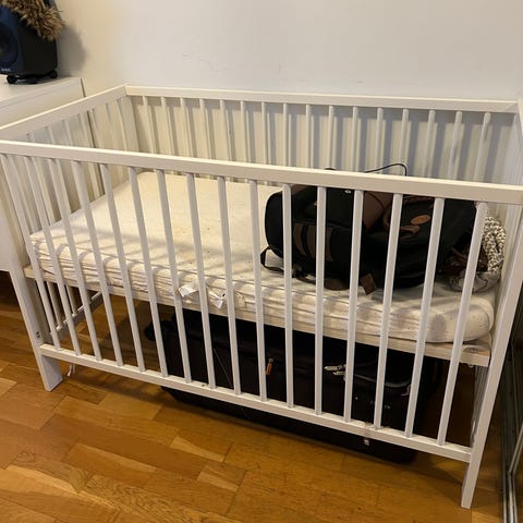 Myydään Ikean hyväkuntoinen Gulliver pinnasänky sekä siihen sopiva patja. Sängyn pohjassa pieni notko (näkyy kuvassa), mutta kun patja on paikallaan, ei notkoa huomaa eikä vaikuta käytettävyyteen. Patja ollut käytössä pari vuotta, mutta uuden veroinen. Sängyn maalipinta on täysin ehjä.