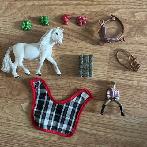 Schleich Vilma, Poni Cristo, aidat, ruoat ja varusteet.