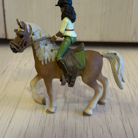 Schleich ratsukko. Ratsastaja ja connemara tamma. Satulassa jotain likaa en kokeillut lähteekö pois. Harvinainen ratsastaja ja varusteet, ei myydä, eikä valmisteta. Ponia kai löytyy vielä kaupoista.