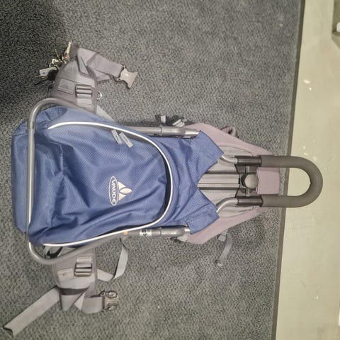 Vaude lasten kantoreppu sinisessä ja mustassa värissä. Kantoreppu on suunniteltu lapsen kantamiseen ja siinä on säädettävät olkaimet ja vyötäröhihna mukautettavuutta varten. Reppu on valmistettu kestävistä materiaaleista ja soveltuu ulkoiluun ja retkeilyyn lasten kuljettamiseen.