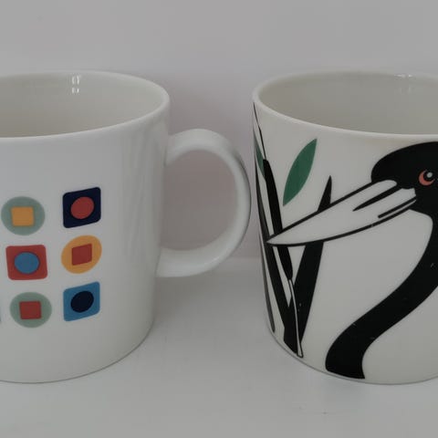 Arabia Teema muki, Aalto Yliopisto. Mukissa on kruunuleima. Muki on uudenveroisessa kunnossa: naarmuton, kolhuton, ei hankautumia.