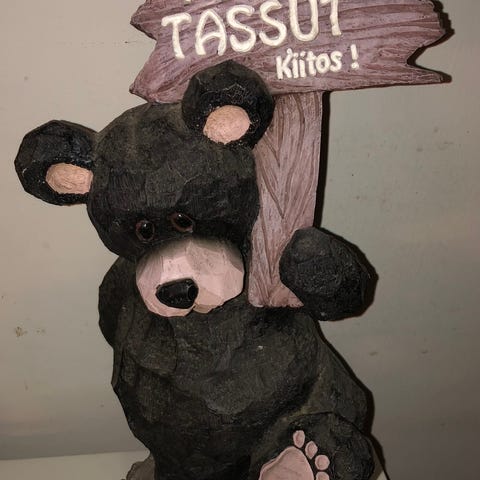 Lovi ohuesta puusta koottu karhu, pituus noin 14 cm