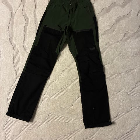 Lähes käyttämättömiksi jääneet mustat kuorihousut. Kaksi vetoketjutaskua ja kaksi taskua ilman vetoketjuja. Lahkeissa ja vyötärössä kiristysnyörit.
